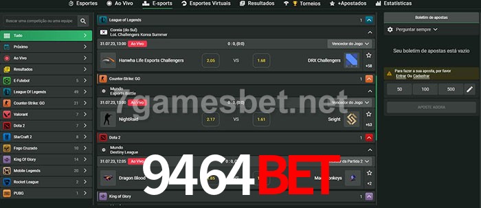 O 9464bet oferece uma grande seleção de opções de apostas em e-sports com probabilidades competitivas